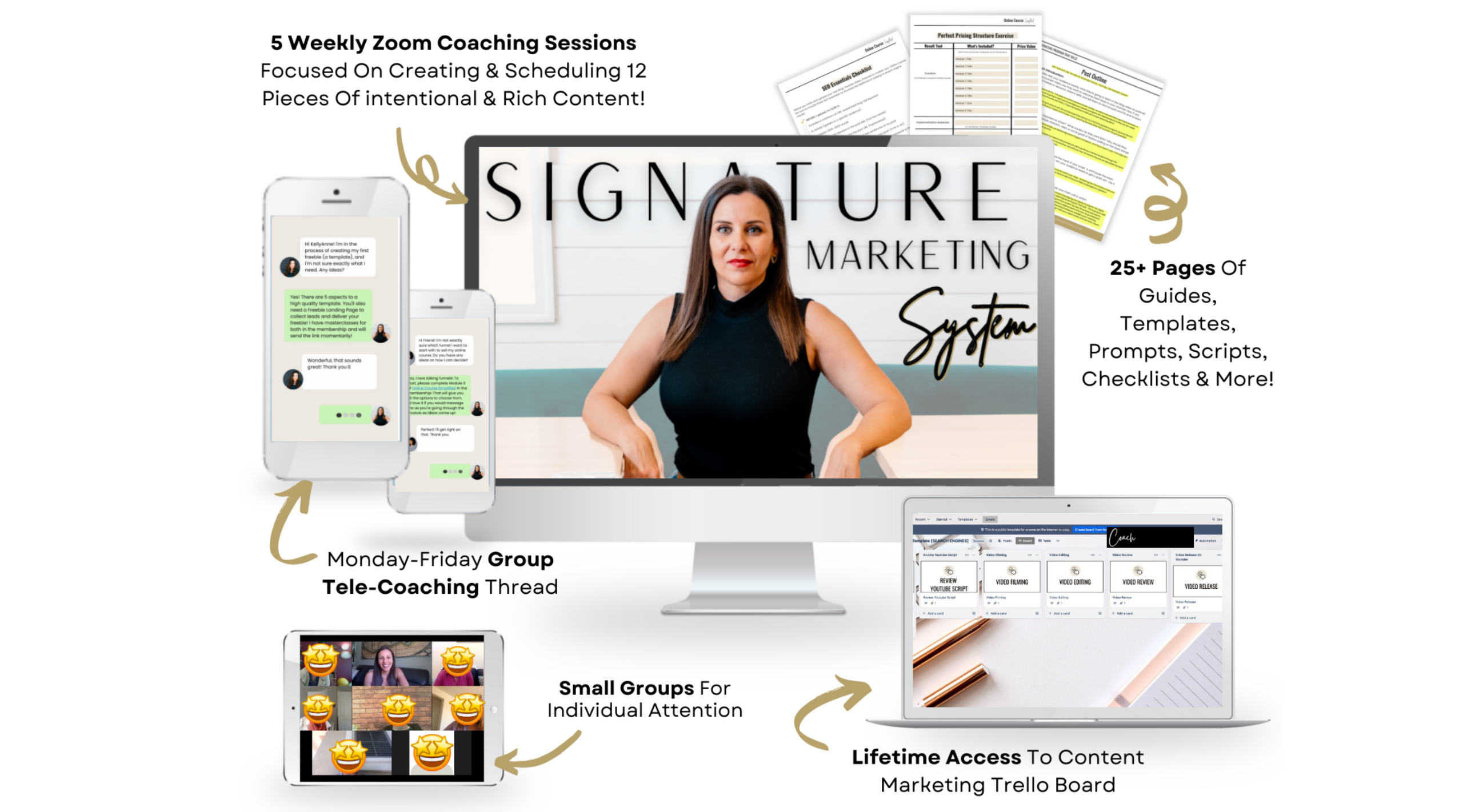 A focused experience to help you simplify your marketing, refine your messaging, and show up consistently. Learn a clear system that turns your content into a steady flow of clients and sales.