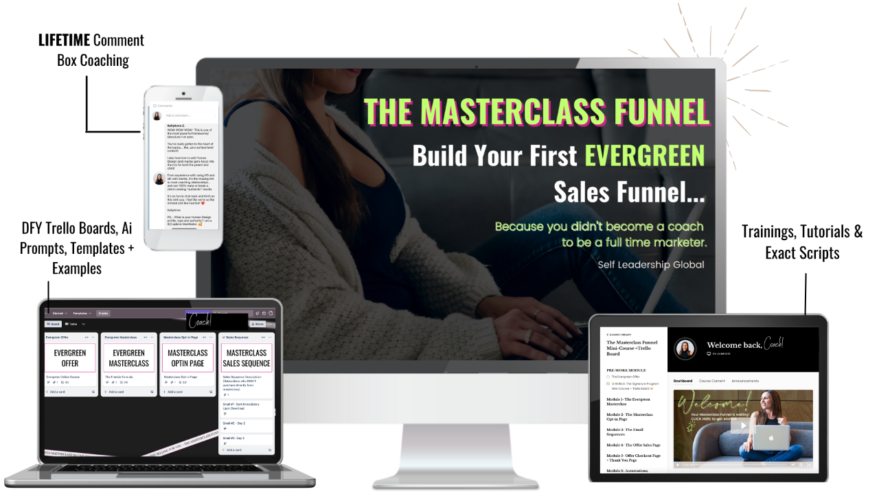 -  Lifetime Comment Box Coaching (M-F) - You’ll never be left figuring things out alone. The comment box is your space to ask questions, get feedback, troubleshoot tech or messaging, and stay focused on completing your funnel in real-time.